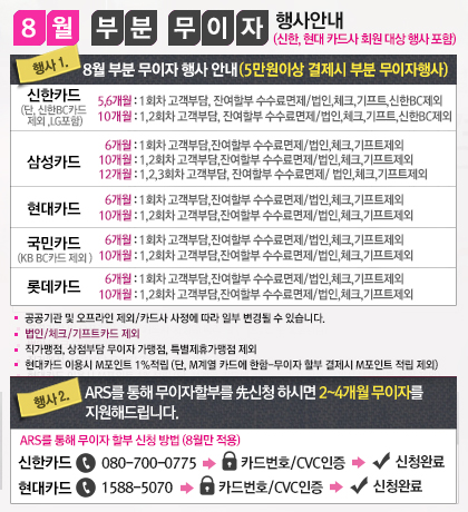 8월 부분 무이자 할부가능 안내