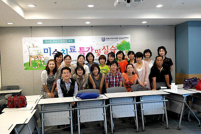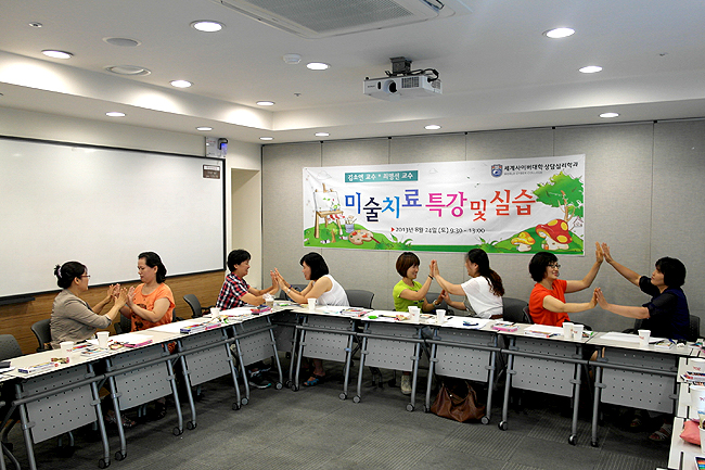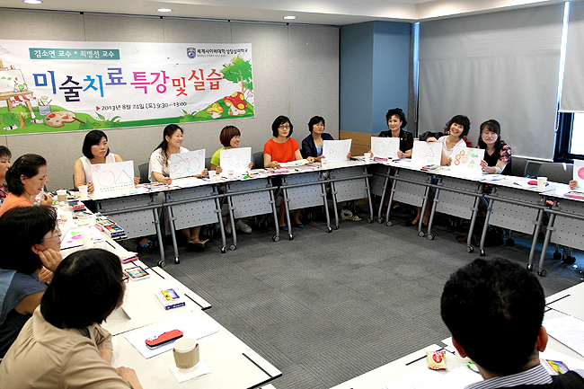 상담심리학과에서는 지난 8월 24일(토), 모임공간 토즈 교대점에서 미술치료를 주제로 한 특강과 실습을 진행하였다. 강사는 김소연(세계사이버대학 상담심리학과장) 교수와 최명선(現 위두심리상담연구소 소장) 교수였으며, 미술치료 이론에 대한 특강과 함께 실습을 연계하여 진행하니 상담자로서의 다양한 상담기법의 활용과 그 적용 가능성을 체험할 수 있었다. 미술은 상담자들이 상담 현장에서 내담자에 대한 이해를 도울 수 있는 효과적인 도구로서 효과적인 매체라는 것을 경험하며 상담자 또한 자신을 점검하고 이해하는 것에 대한 중요성을 인식하는 시간이었다. 이후에도 온라인 강의로는 경험하기 어려운 상담이론과 실제에 관한 다양한 특강을 진행할 예정이다.