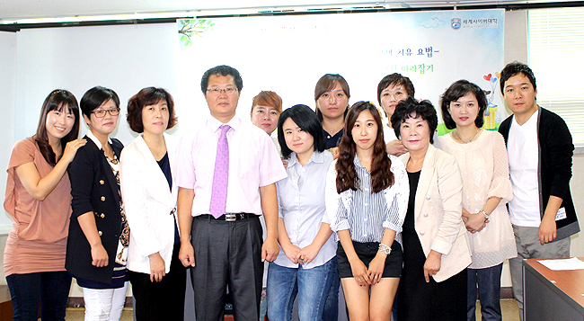 2013년 9월 7일(토) 오전10시~오후2시 세계사이버대학 피부미용뷰티학과(학과장/미용학박사 허 창 호 교수)에서는 신입생(2013학년도 2학기 입학생), 재학생, 졸업생을 위한 특강을 세계사이버대학 교육지원센터 대회의실에서 진행하였다.