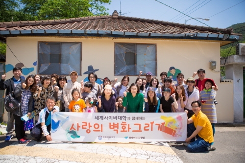 지난 14일 진행된 이번 행사는 세계사이버대학 개교 16주년을 기념하여 마을의 주변 환경을 조화롭게 꾸미기 위해 기획되었으며, `한국 전통화`라는 주제로 다채로운 색감의 벽화그리기를 실시했다.