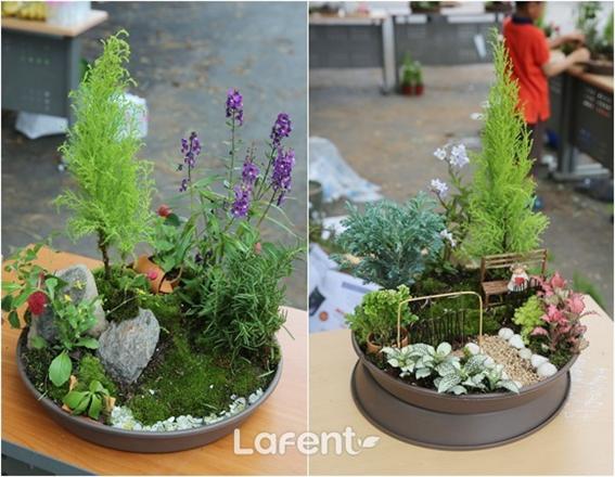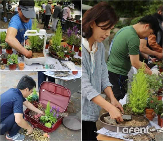 실제 경연시간이 다가오자 수강생들은 더욱 활기를 띠었다. 작은 용기와 식물 7가지가 배분됐고, 나머지는 근처 산이나 건물에서 가져와야 했다. 수강생들은 마사토를 퍼 담아 배수층을 만들고, 근처에서 채취해온 이끼, 사초류, 깨진 병, 나뭇가지 등을 활용해서 각기 다른 이야기를 담은 정원을 만들었다.