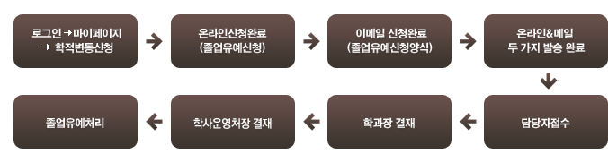 졸업유예 신청을 할 경우에는 동ㆍ하계 방학 기간 중 소정의 기간에 신청할 수 있다.
